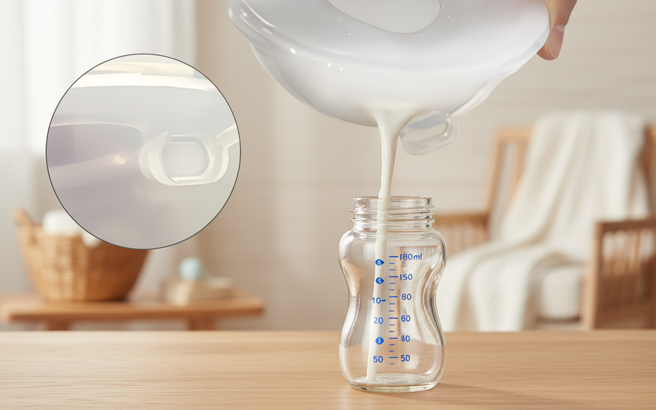 Jeder kleine Tropfen wird für hungrige Babys aufbewahrt. Das clevere Design verhindert Verschütten und hält die Kleidung trocken.