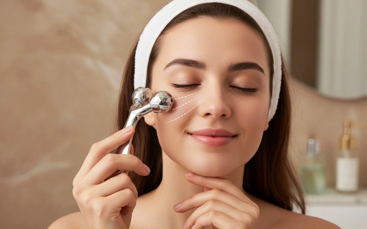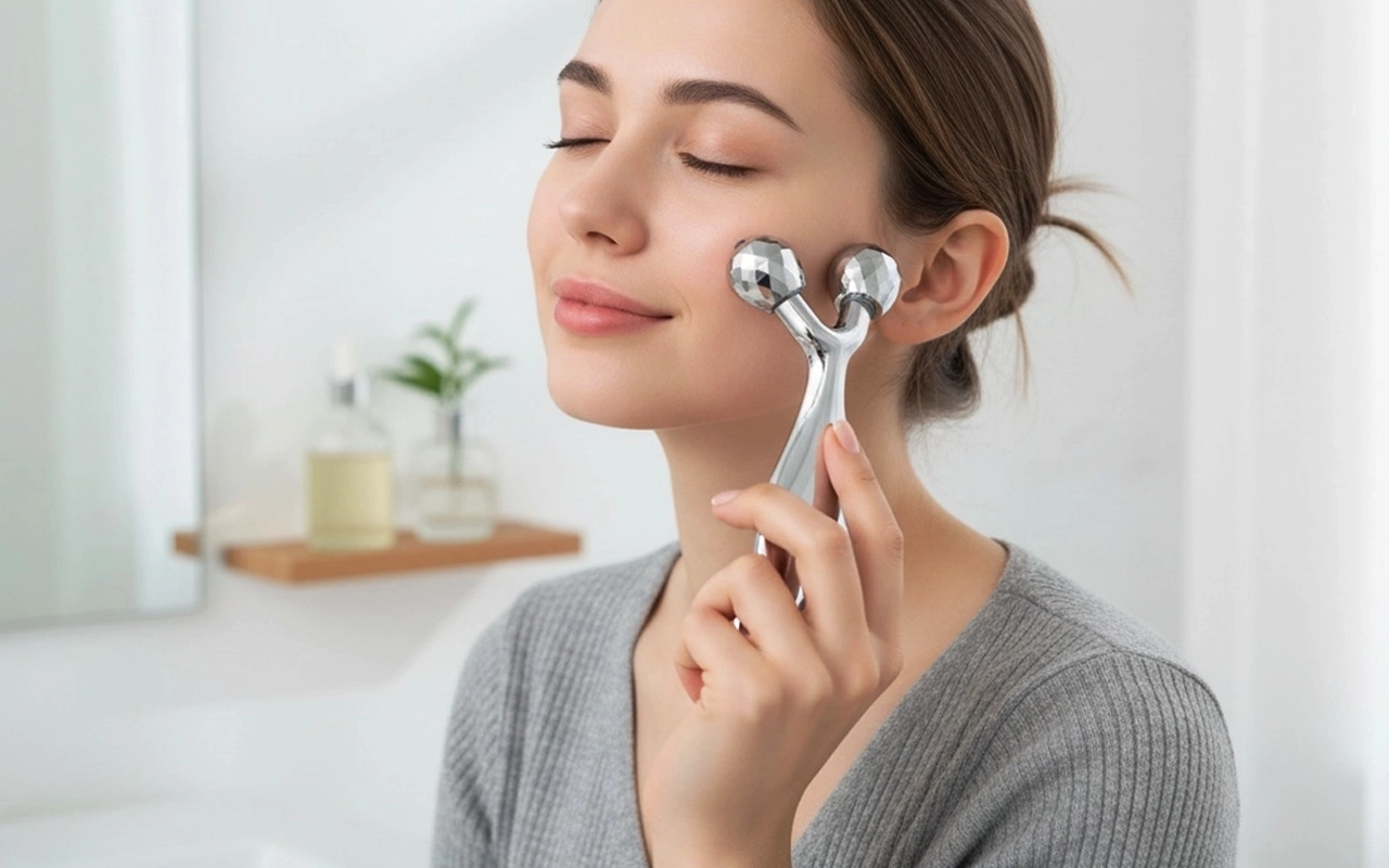 Kühler Edelstahl hilft, Schwellungen schnell zu beruhigen. Linderung für müde Augen und Haut erfolgt zügig nach sanftem Rollen.
