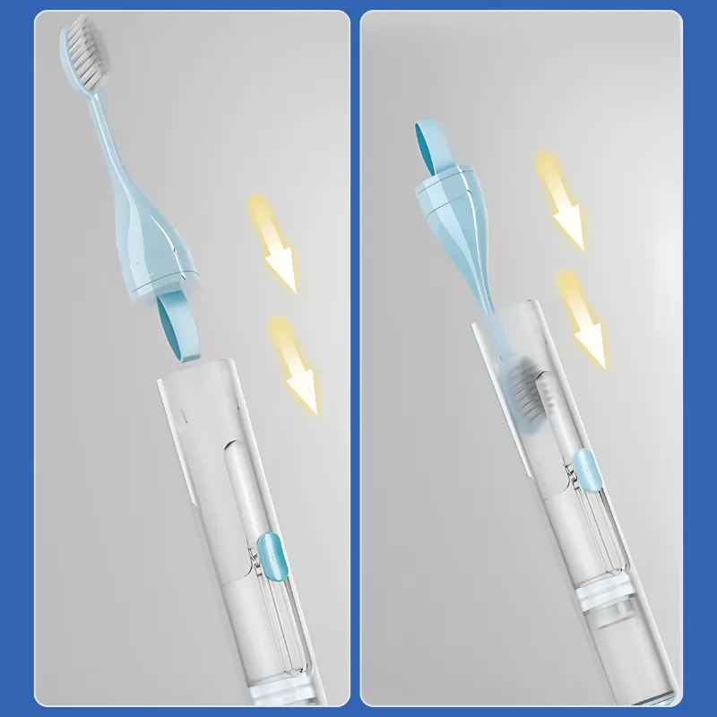 Stecken Sie es in jede Tasche oder jeden Geldbe, ohne zusätzliches Volumen. Reisen Sie leicht und machen Sie sich nie wieder Sorgen um Ihre Mundpflege.