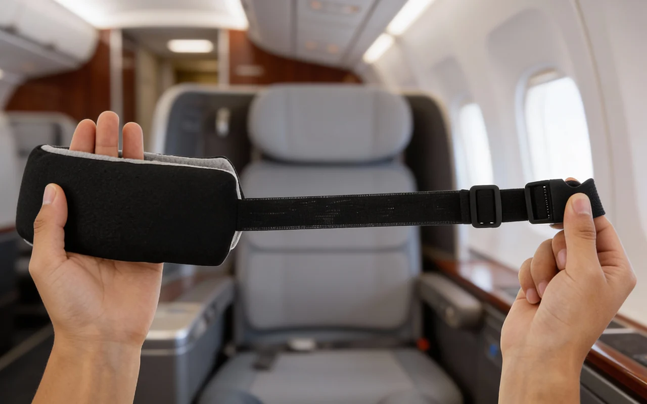 Das Stirnband ist so weich und angenehm auf meiner Haut. Ich mag es, dass es bleibt, wo es ist, und meinen Kopf ruhig hält, auch wenn ich ein Nickerchen mache. Eine richtig gute Idee fürs Reisen.