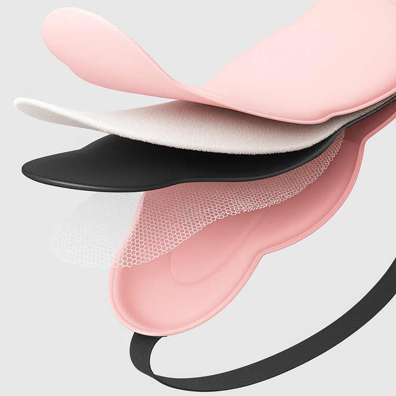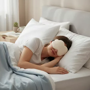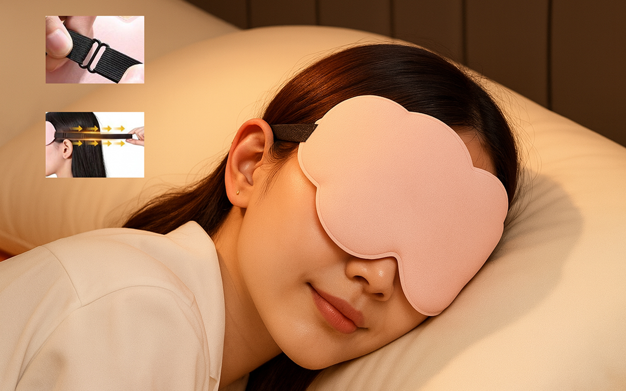 Unsere Augenmaske ist so gestaltet, dass sie sich jeder Kontur anpasst und Druck auf Augen und Nasenrücken eliminiert. Sie sorgt in jeder Schlafposition für Komfort und reduziert die Wahrscheinlichkeit von Hautabdrücken.