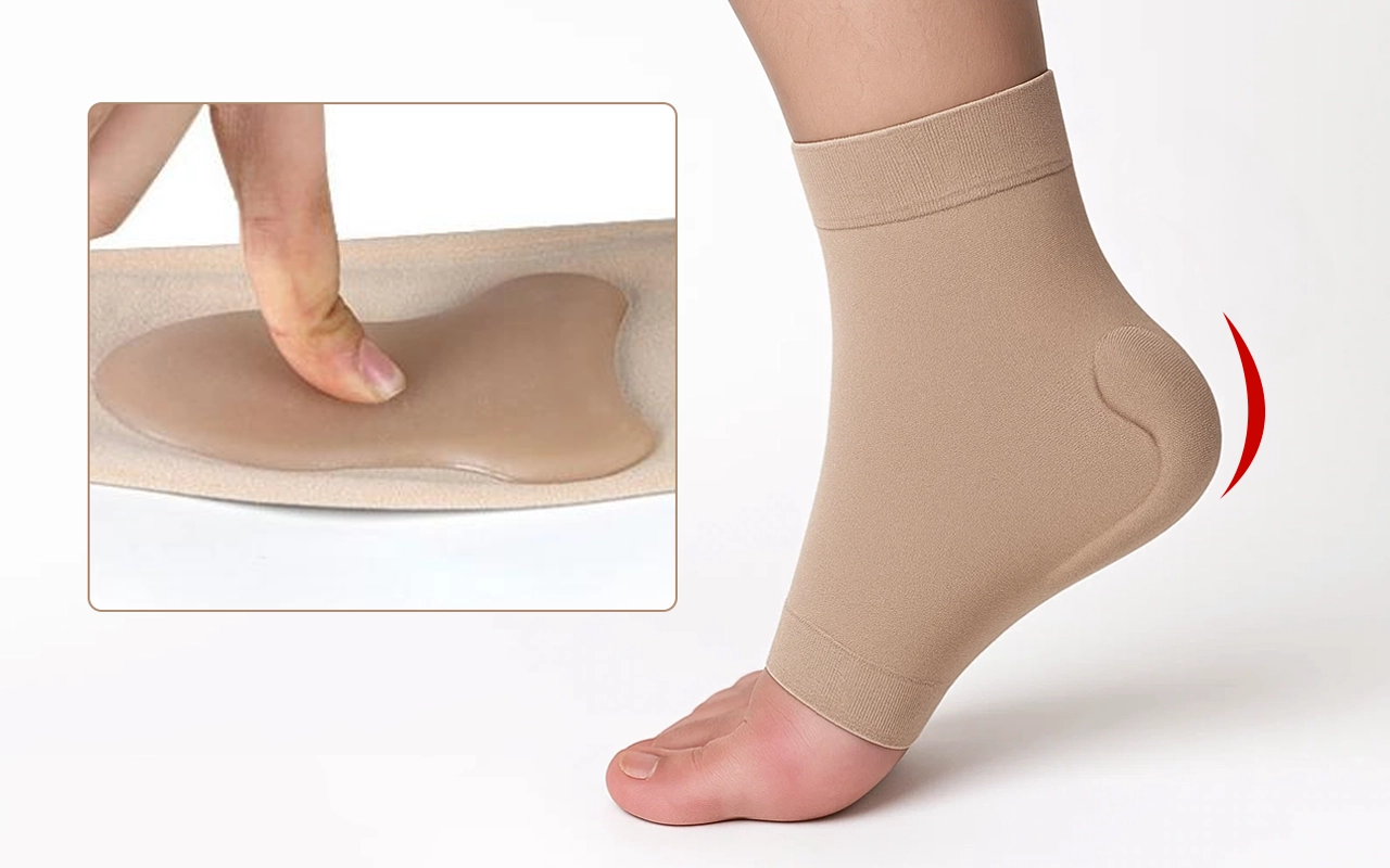 Sanfte Kompression stützt Ihr Sprunggelenk und hilft, Ausrutschen zu verhindern. Dehnbares Material sorgt für eine gute Passform bei allen Fußgrößen.