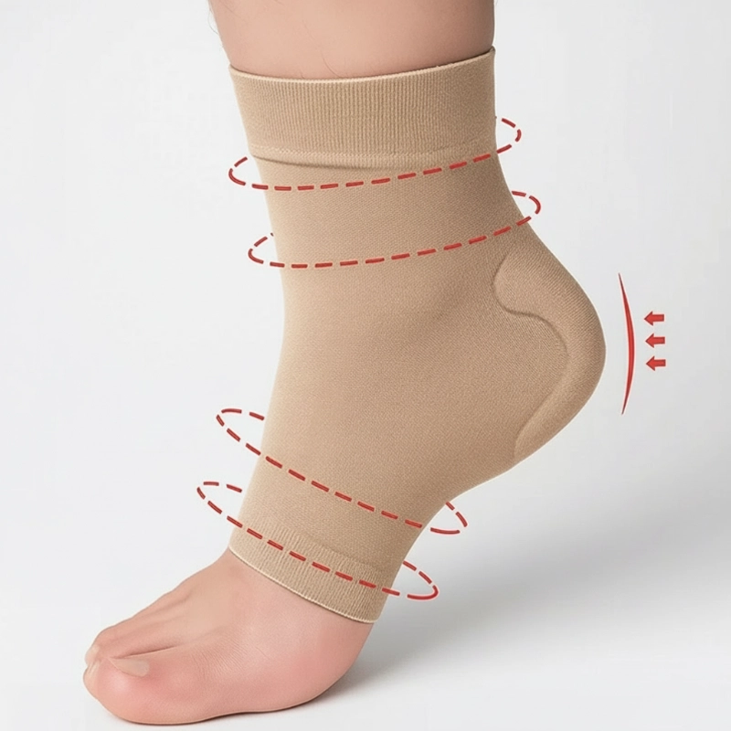 Sanfte Kompression stützt Ihr Sprunggelenk und hilft, Ausrutschen zu verhindern. Dehnbares Material sorgt für eine gute Passform bei allen Fußgrößen.