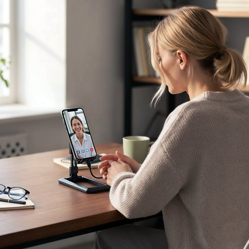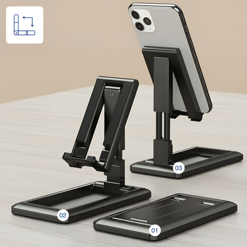 Ehrlich gesagt hat dieser Handyhalter meinen Nacken während langer Lernsessions gerettet. Ich liebe es, wie einfach er sich verstellen und nach Gebrauch zusammenklappen lässt.
