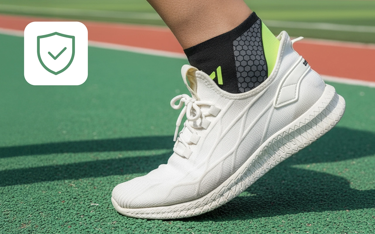Starke elastische Struktur hält Ihren Fuß beim Sport stabil. Reduziert das Verletzungsrisiko, sodass Sie mit Vertrauen spielen können.