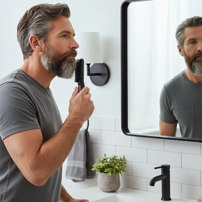 Zähmen Sie widerspenstiges Barthaar ganz einfach mit dem Ortorex-Glätter. Die beheizte Bürste macht hektische Morgen für Vielbeschäftigte einfacher. Sanfte Borsten gleiten über jedes Haar und hinterlassen einen gepflegten, ordentlichen Eindruck. Genießen Sie einen polierten Look, der den ganzen Tag über Selbstvertrauen schenkt.