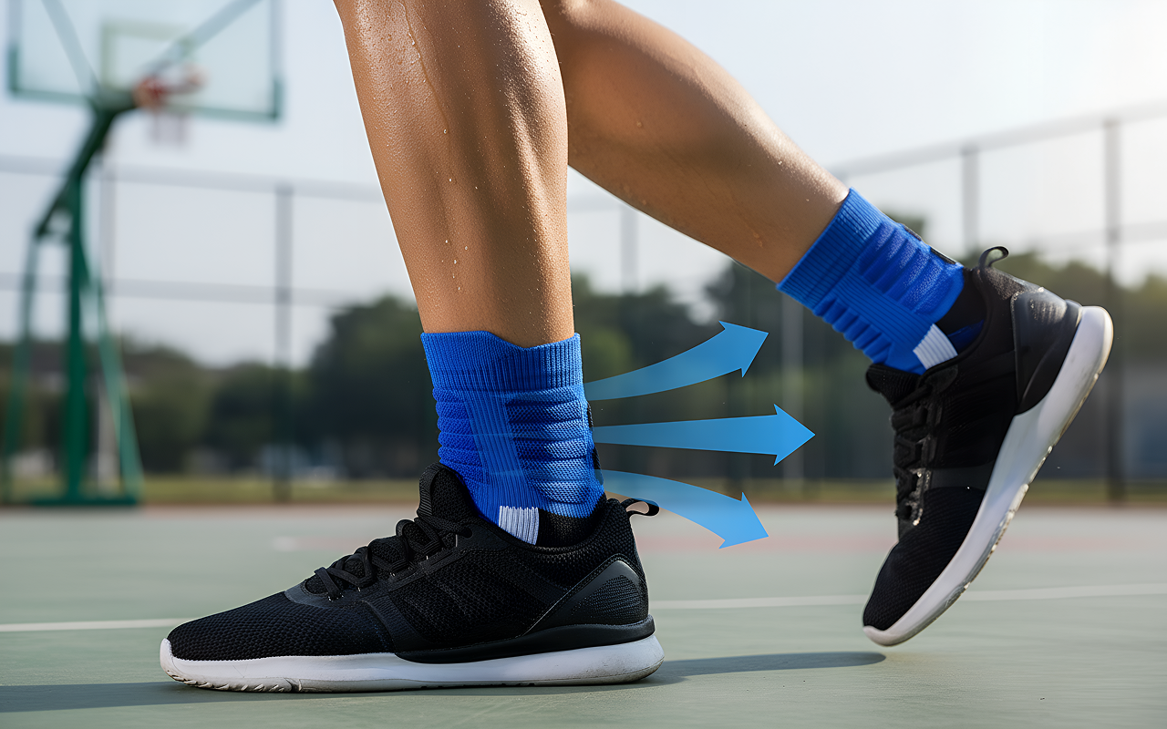 Diese Socken halten meine Füße während Basketballspielen kühl. Sie werden nicht feucht oder rutschen herunter, und meine Zehen fühlen sich auch nach Stunden draußen nie eingeengt an.