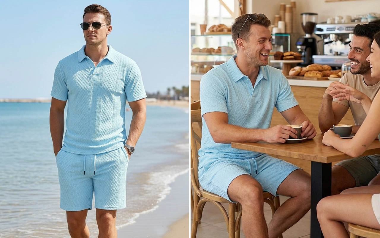 Genießen Sie warme Tage, fühlen Sie sich jedes Mal frisch und selbstbewusst. Das Ortorex-Set verwendet einen leichten Strickstoff, der sich sanft und luftig anfühlt. Es hält Sie draußen bequem, egal ob beim Entspannen oder Bewegen. Dieses Outfit verleiht einen smarten Touch und lässt Sie mühelos herausstechen.