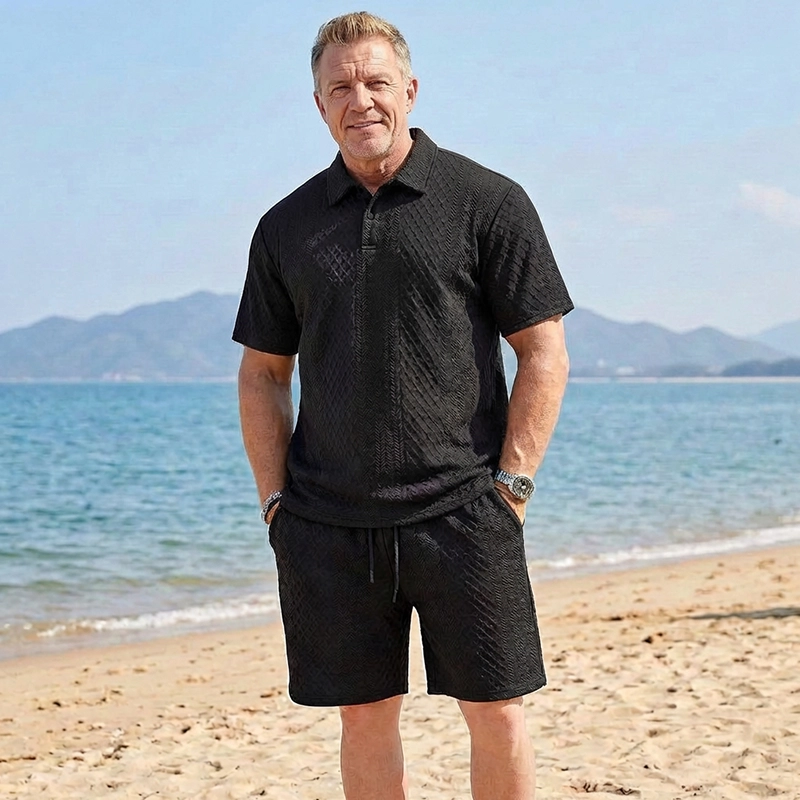 Genießen Sie warme Tage, fühlen Sie sich jedes Mal frisch und selbstbewusst. Das Ortorex-Set verwendet einen leichten Strickstoff, der sich sanft und luftig anfühlt. Es hält Sie draußen bequem, egal ob beim Entspannen oder Bewegen. Dieses Outfit verleiht einen smarten Touch und lässt Sie mühelos herausstechen.