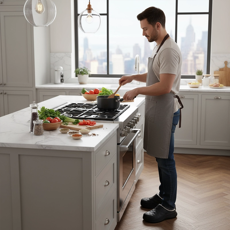 Außenschicht weist Spritzer ab und hält die Füße trocken und sauber. Keine Sorge um Wasserspritzer in Küche oder Flur.