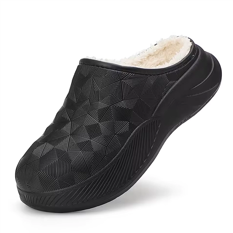 Dicke Sohle absorbiert Stöße und dämpft jeden Schritt. Bewegen Sie sich im Haus stabil und geschützt.
