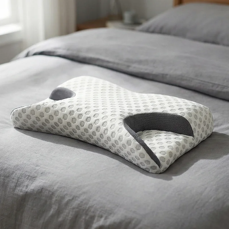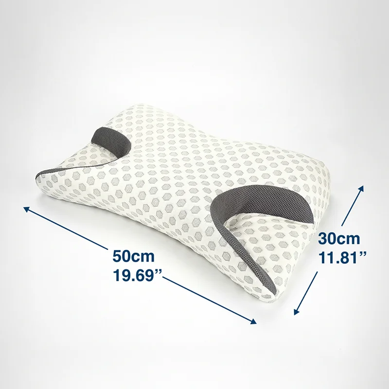 Die spezielle Form hält alles die ganze Nacht stabil. Vergessen Sie es, mit verrutschter Maske aufzuwachen.