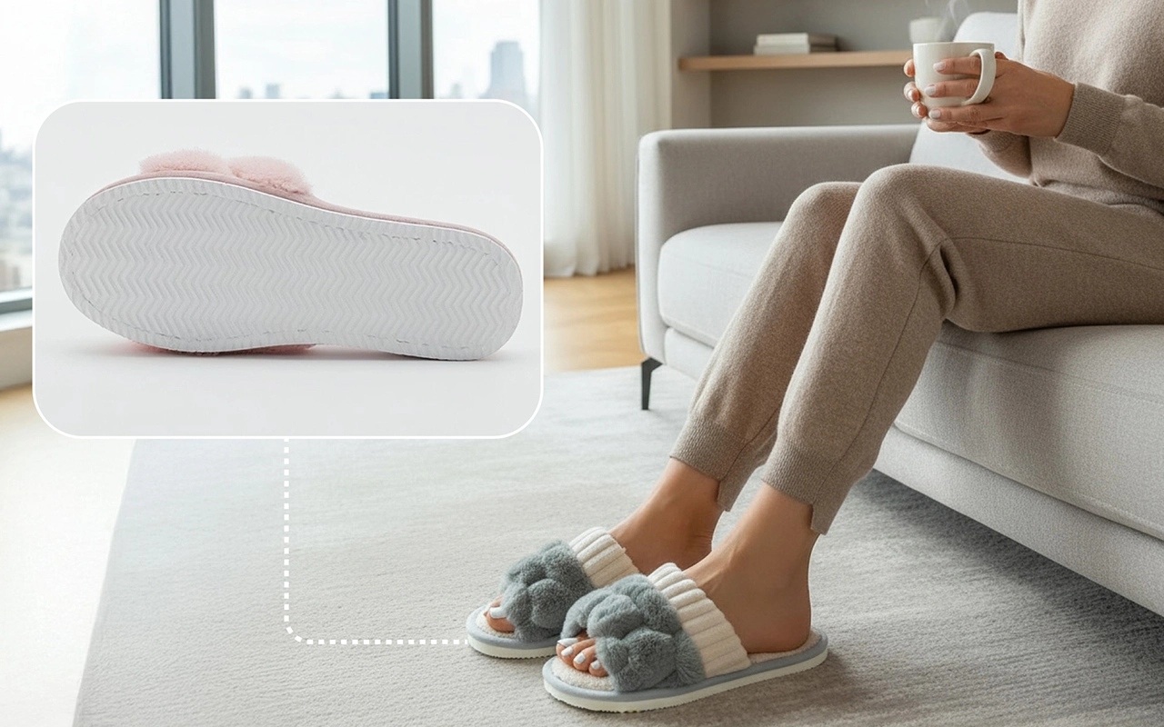 Fühlen Sie sich auf jedem Boden sicher durch die rutschfeste EVA-Sohle. Gehen Sie bedenkenlos im Haus, ohne Angst vor Ausrutschen oder Stolpern.