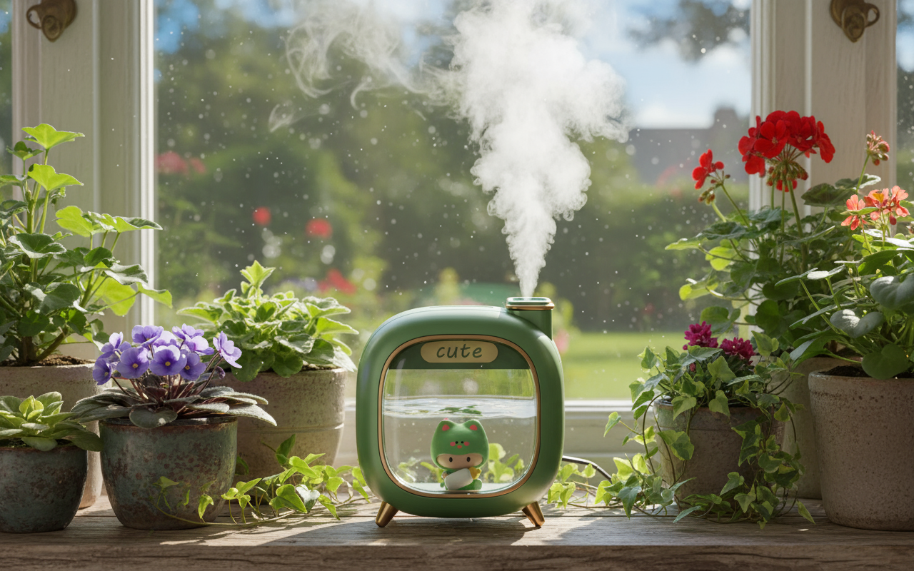 Zwei Nebelauslässe verteilen die Feuchtigkeit gleichmäßig im Raum. Jede Ecke fühlt sich frisch an und schafft ein angenehmes Klima.