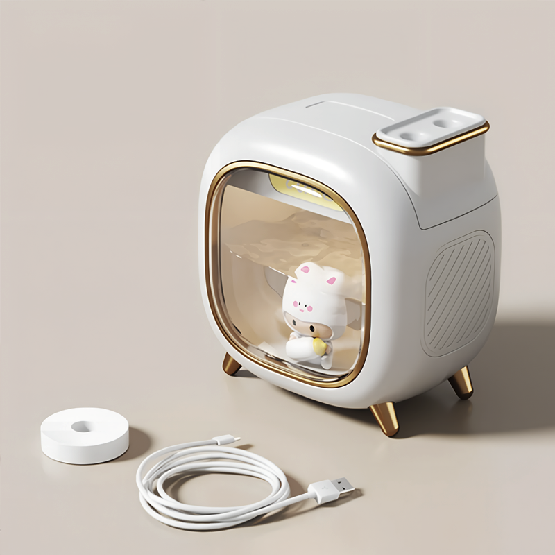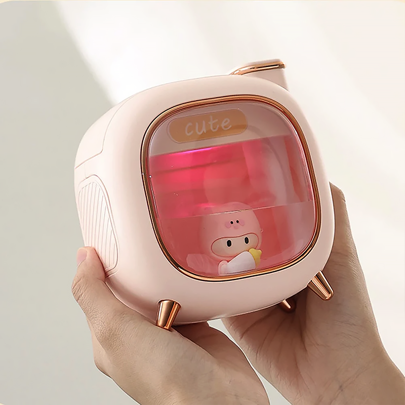 Ichze diesen niedlichen Luftbefeuchter jede Nacht. Mein Zimmer fühlt sich so frisch an und das sanfte Licht ist entspannend zum Einschlafen.