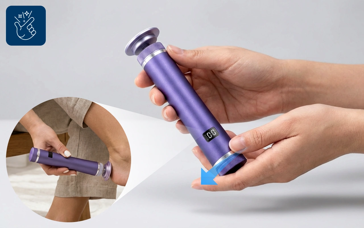 Raue Haut verursacht täglich Unbehagen und Verlegenheit. Die elektrische Fußfeile von Ortorex verwandelt trockene, rissige Fersen in weiche, gesunde Fußsohlen. Genießen Sie mühelose Pflege mit professionellen Ergebnissen, ohne das Haus zu verlassen. Übernehmen Sie die Kontrolle über Ihren Komfort, Ihr Selbstbewusstsein und Ihr Wohlbefinden.