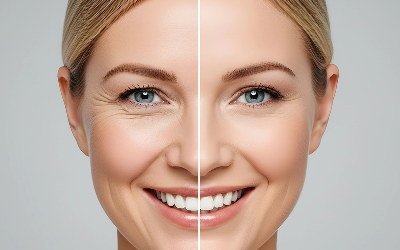 Feine Linien und tiefe Falten verblassen für ein jugendlicheres Aussehen. Die Haut wirkt glatter, während die Oberfläche weich und geschmeidig bleibt.