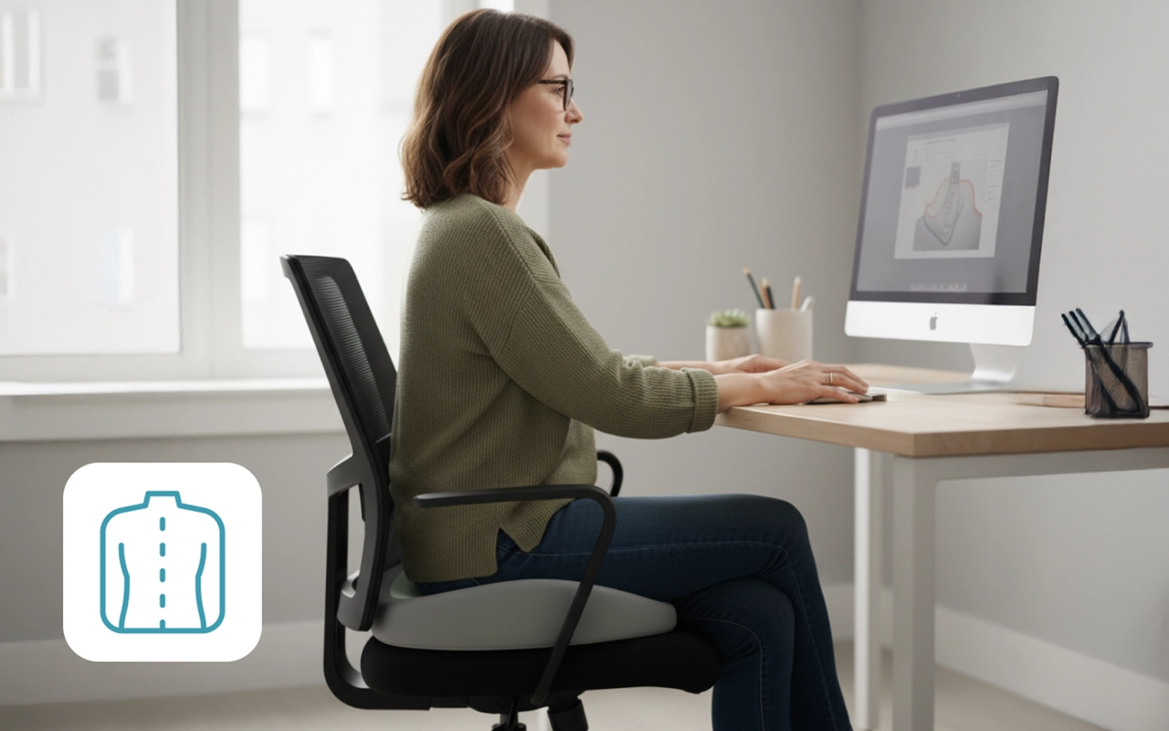 Stundenlanges Sitzen am Schreibtisch kann zu Schmerzen und Müdigkeit führen. Das Ortorex-Kissen bringt Linderung und hilft Ihnen, sich den ganzen Tag besser zu fühlen. Genießen Sie das Sitzen überall – ob zu Hause, bei der Arbeit oder auf Reisen im Auto.