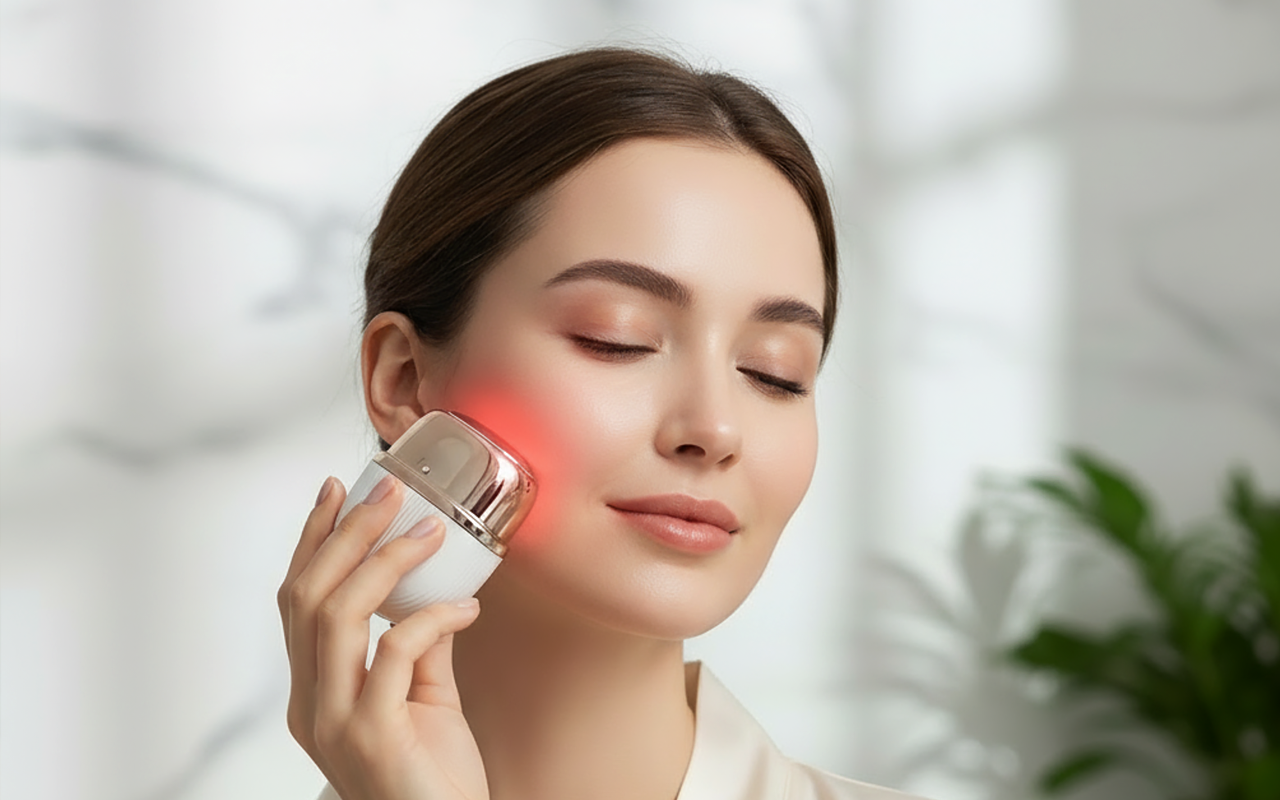 LED-Lichter helfen dabei, blasse Töne zu mildern und den Glow zu stärken. Drei Farben der Lichttherapie verleihen müden Gesichtern sofortige Strahlkraft.