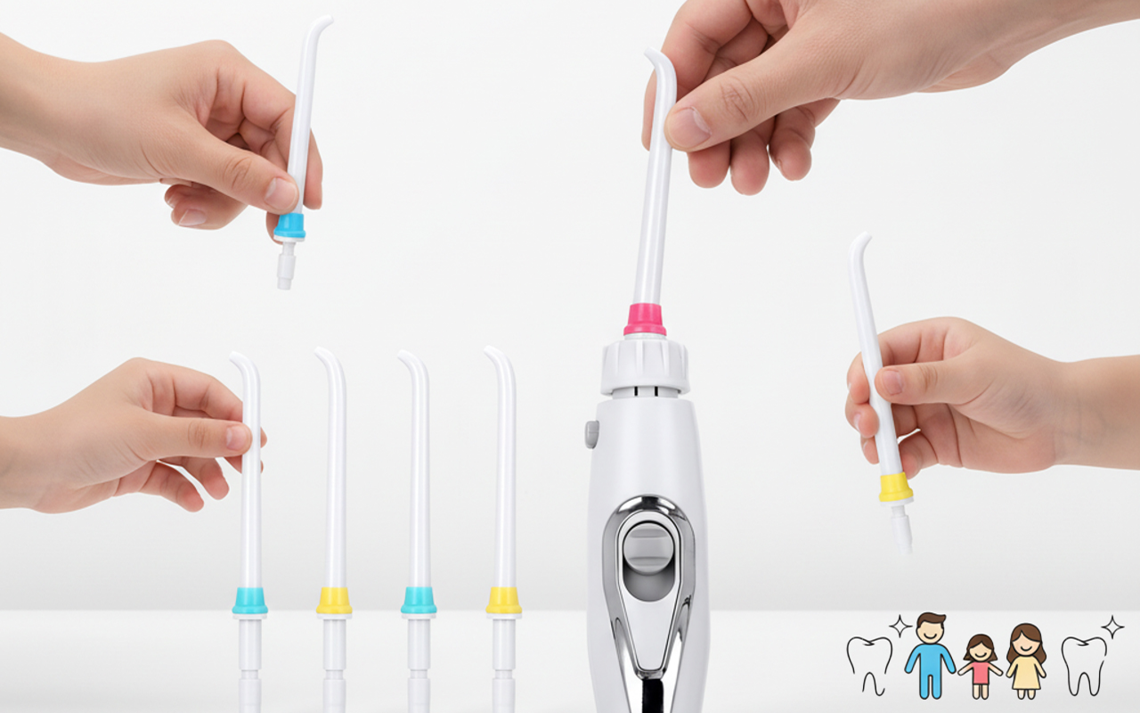 Ich kann wirklich nicht glauben, wie frisch mein Atem jetzt bleibt. Jeder in unserer Familie hat seine eigene Düsenfarbe – so clever und super, um alles sauber zu halten.