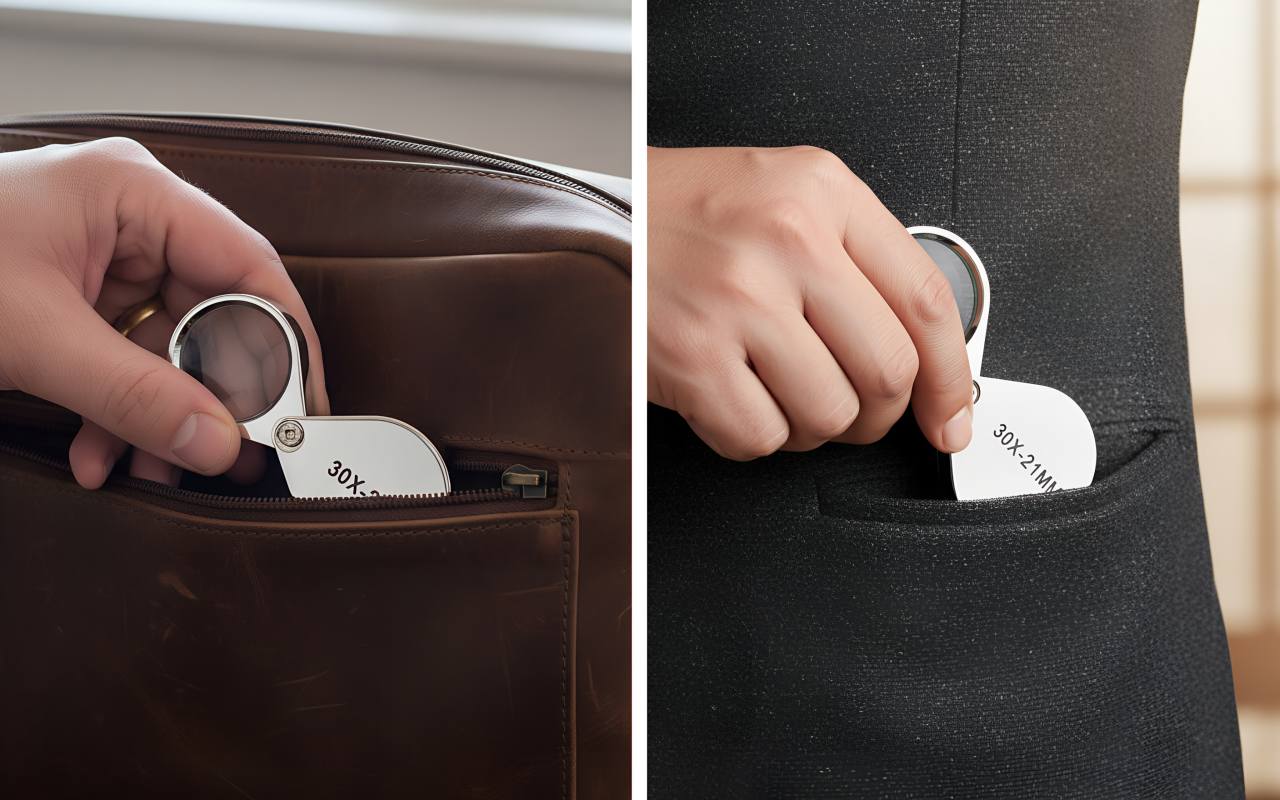Leichter Rahmen passt problemlos in jede Tasche oder Beutel. So haben Sie überall eine starke Vergrößerung griffbereit.