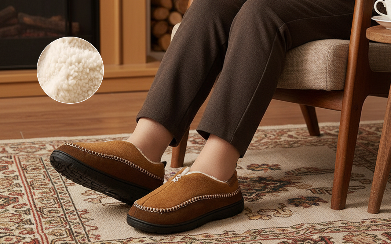 Ich liebe meine Memory-Hausschuhe! Meine Füße fühlen sich die ganze Nacht so gemütlich und gestützt an. Das Innenfutter ist super weich und fühlt sich nie kalt an, selbst im Winter.