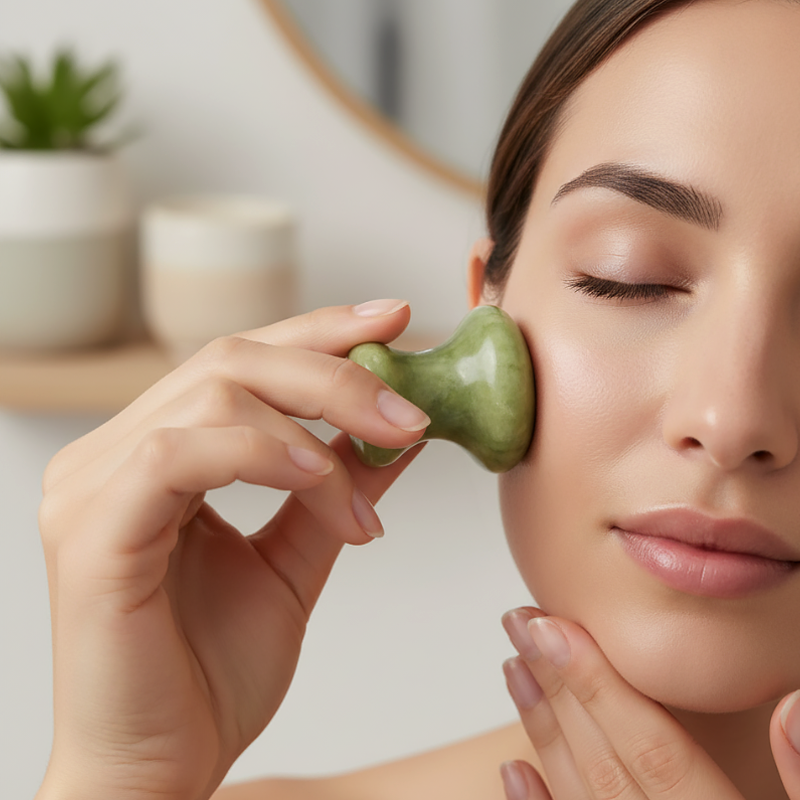 Das Gua-Sha-Tool hilft wirklich, morgens mein Gesicht zu entspannen. Super einfach, und ich kann meinen Kiefer und meine Wangen deutlicher sehen. Sogar mein Bruder nutzt es manchmal.