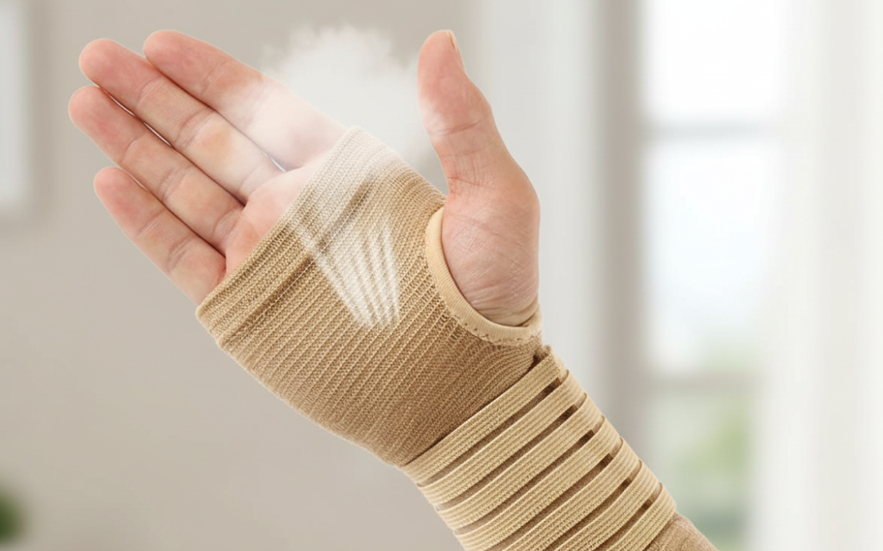 Elastisches Material bleibt auch nach langem Tragen frisch. Die flexible Handgelenkbandage sitzt fest, ohne Schweiß oder Reizungen zu verursachen.