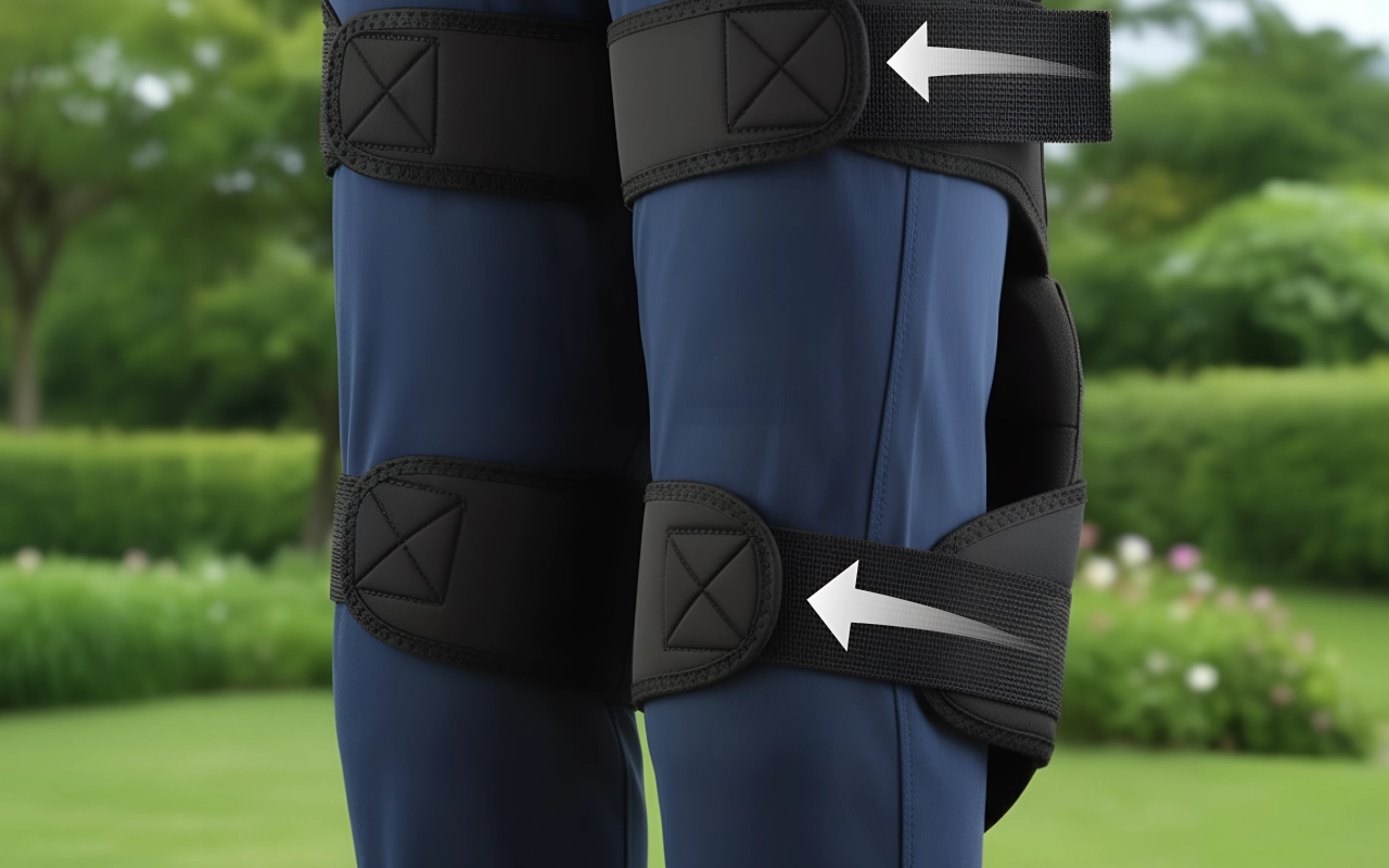 Einfache Riemen lassen sich in Sekunden auf jede Beinweite einstellen. Die Auflagen bleiben sicher an Ort und Stelle, sodass Sie sich schnell bewegen können, ohne zu verrutschen.