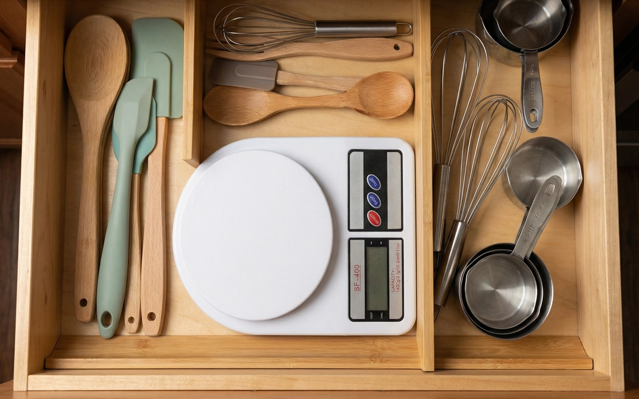 Die Ortorex-Küchenwaage nimmt kaum Platz in Ihrer Küche ein. Sie lässt sich einfach verstauen und sogar auf Reisen mitnehmen.