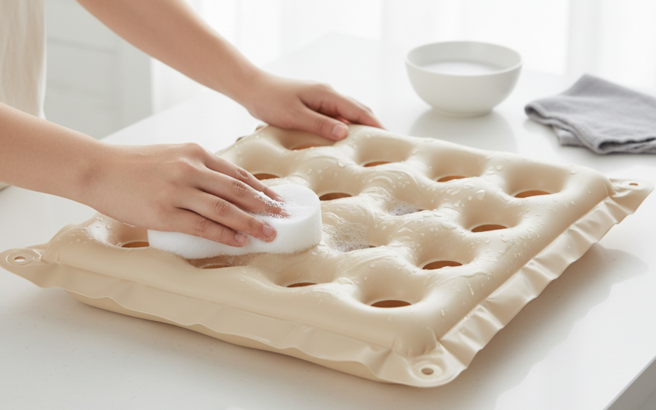Ich benutze es auf meinem Arbeitsstuhl und fühle mich nach langen Telefonaten viel besser. Die Reinigung dauert nur eine Minute, was ich sehr schätze.