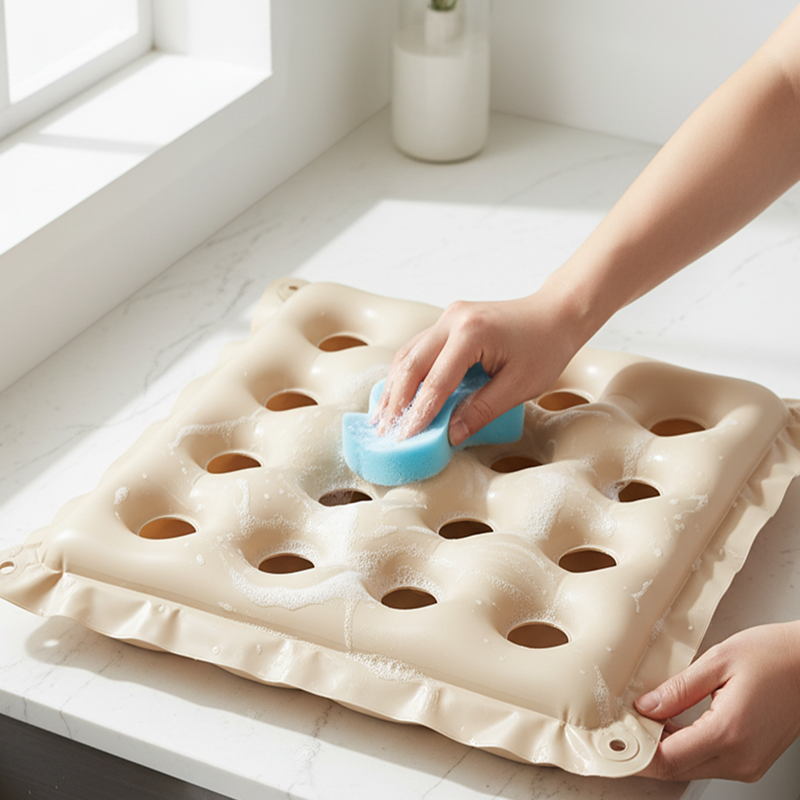Ich habe dieses Sitzkissen für meinen Home-Office-Stuhl gekauft und wow, ich kann endlich stundenlang sitzen, ohne dass mein Rücken oder meine Hüften schmerzen. Außerdem super leicht zu reinigen!
