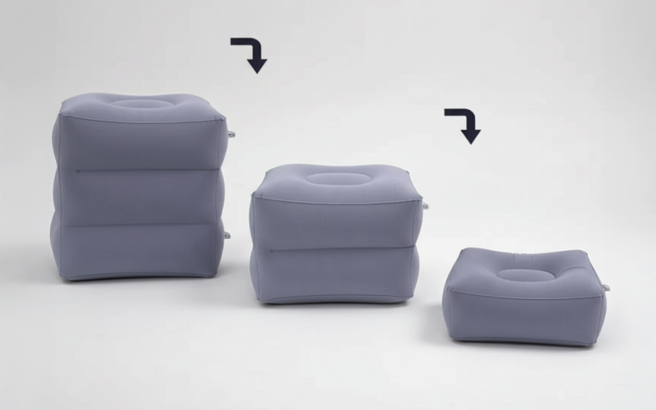 Lässt sich klein zusammenfalten und passt in jede Tasche oder jeden Rucksack. Nehmen Sie die aufblasbare Fußstütze von Ortorex überallhin mit, ohne zusätzliches Gewicht.