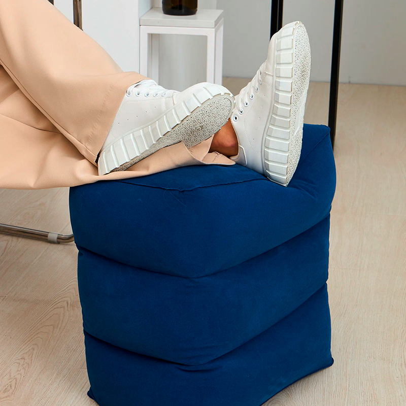 Lässt sich klein zusammenfalten und passt in jede Tasche oder jeden Rucksack. Nehmen Sie die aufblasbare Fußstütze von Ortorex überallhin mit, ohne zusätzliches Gewicht.