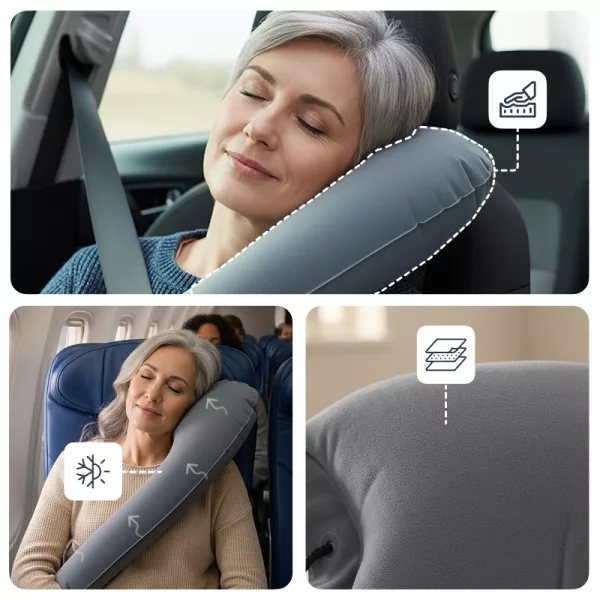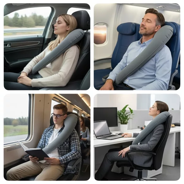 Ich benutze mein aufblasbares Kissen jedes Mal, wenn ich mit dem Zug meine Familie besuche. Keine steifen Schultern mehr!