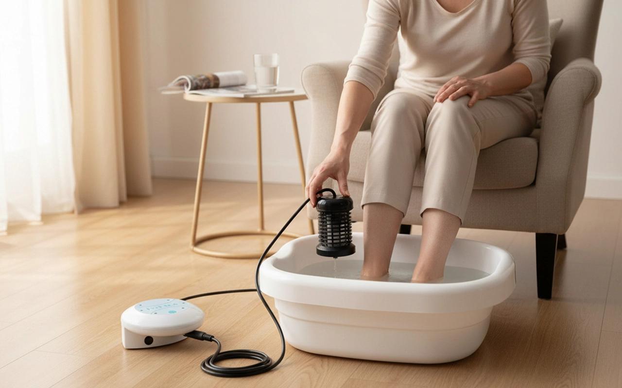 Entspannen Sie müde Muskeln sanft zu Hause und ganz ohne Aufwand. Ortorex Ionic reinigt die Füße, entfernt Giftstoffe und hilft, die Gelenke zu entlasten. Die Farben im Wasser zeigen, wie Verunreinigungen den Körper verlassen. Einfach Salz hinzufügen, zurücklehnen und weniger Schwellungen bemerken. Genießen Sie sichtbare Ergebnisse nach jeder entspannenden Sitzung.