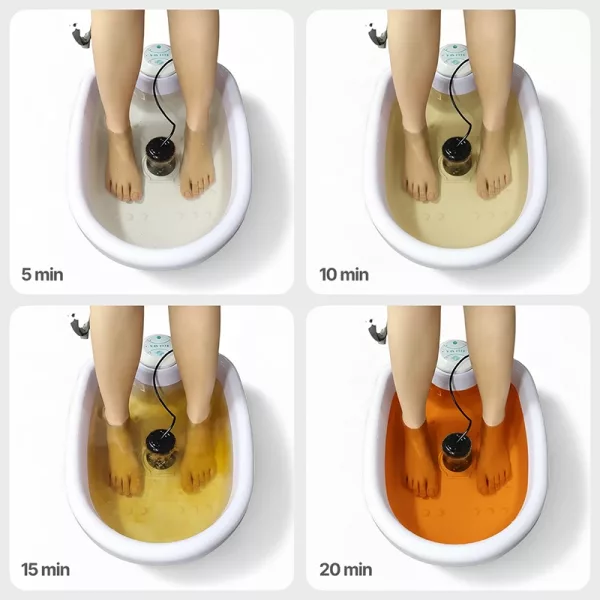 Ich benutze das Detox-Spa jetzt jeden Abend nach der Arbeit und meine Füße sind viel weniger geschwollen. Ich liebe es auch, zu beobachten, wie sich das Wasser verfärbt!