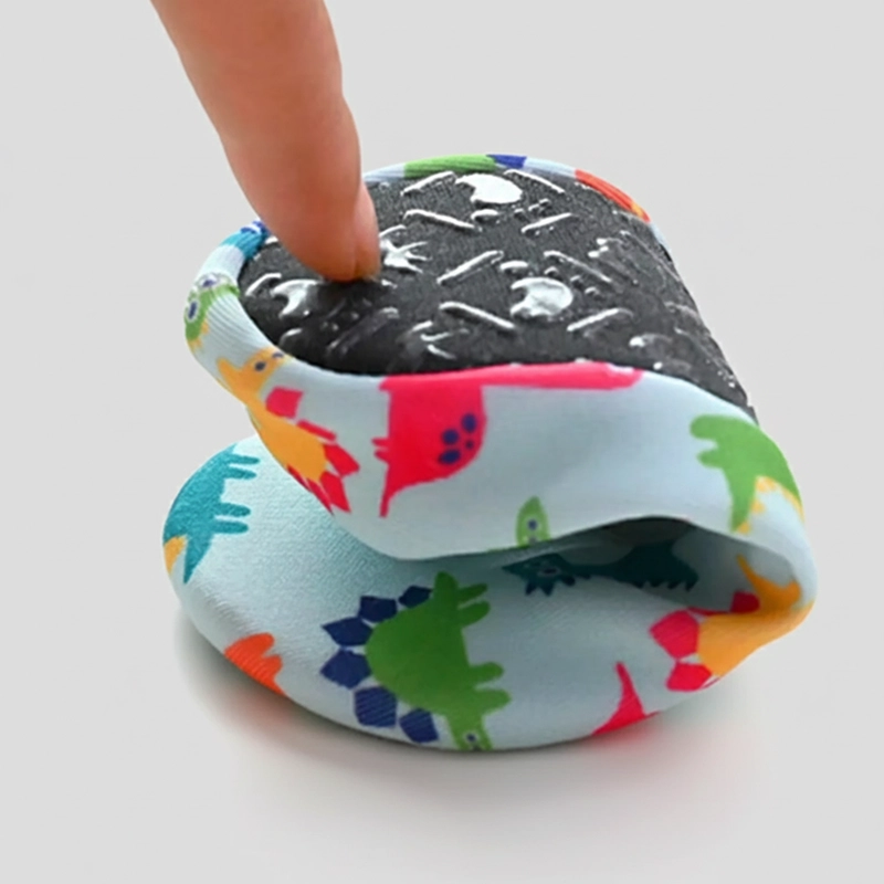 Unsere Schuhe haften fest auf nassen Oberflächen und helfen Kindern, sicher auf den Beinen zu bleiben.