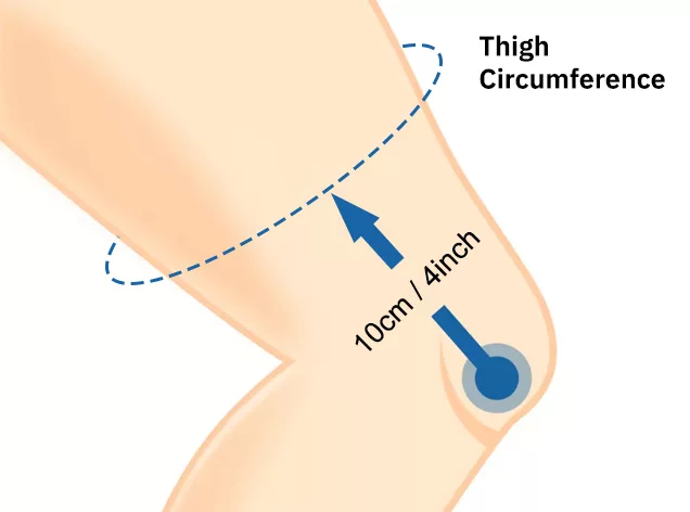 - 1. Beugen Sie Ihr Bein in einem 30°-Winkel und messen Sie den Umfang Ihres Oberschenkels 10 cm (4'') oberhalb der Kniescheibe.