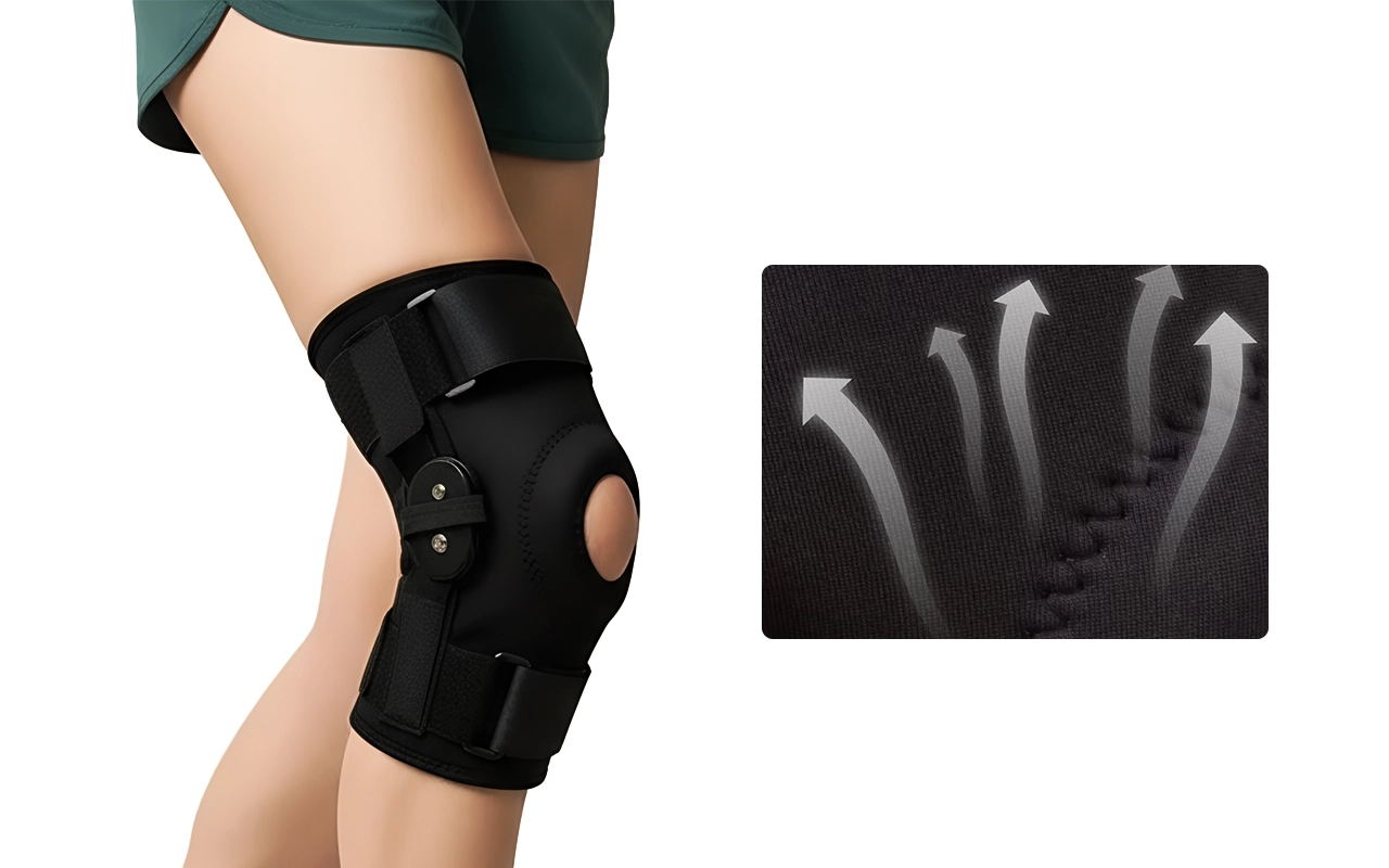 Seitenstreben stabilisieren Ihr Knie beim Gehen oder Sport. Die Unterstützung bleibt fest und hilft, Verdrehungen oder plötzliche Bewegungen zu vermeiden.