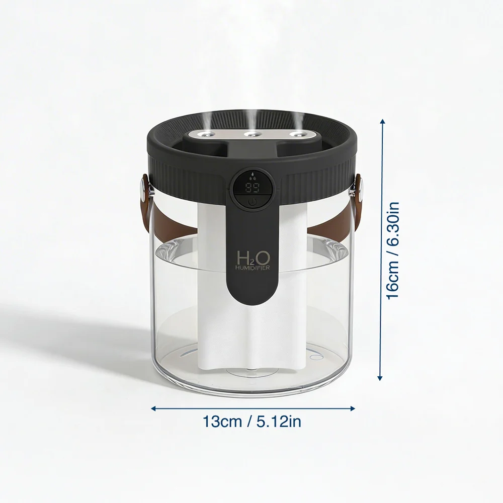 Drei Sprühdüsen decken größere Bereiche in kürzerer Zeit ab. Wählen Sie zwischen geringem, mittlerem oder starkem Nebel für perfekten Komfort.