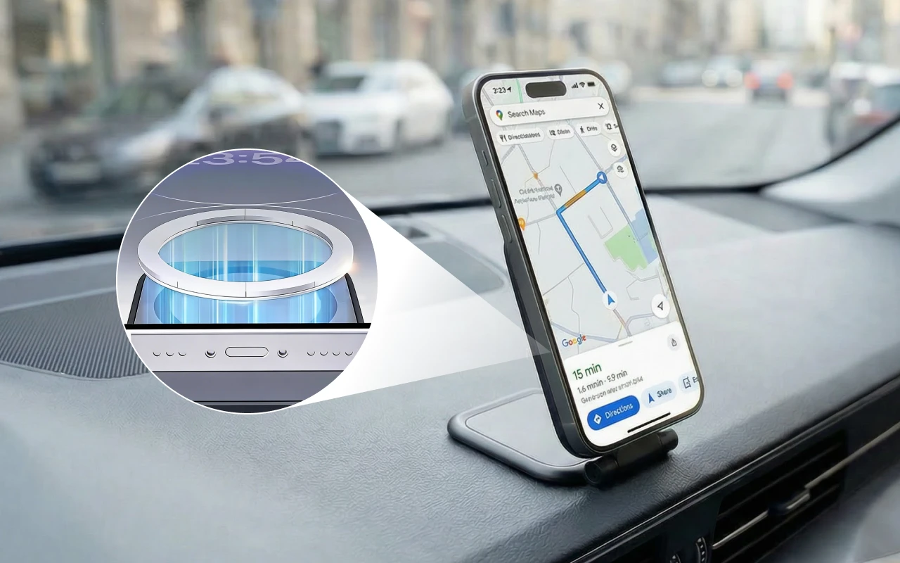 Ihr Gerät bleibt auch in engen Kurven oder auf holprigen Straßen stabil. Der starke Magnetgriff sorgt dafür, dass es nie verrutscht.