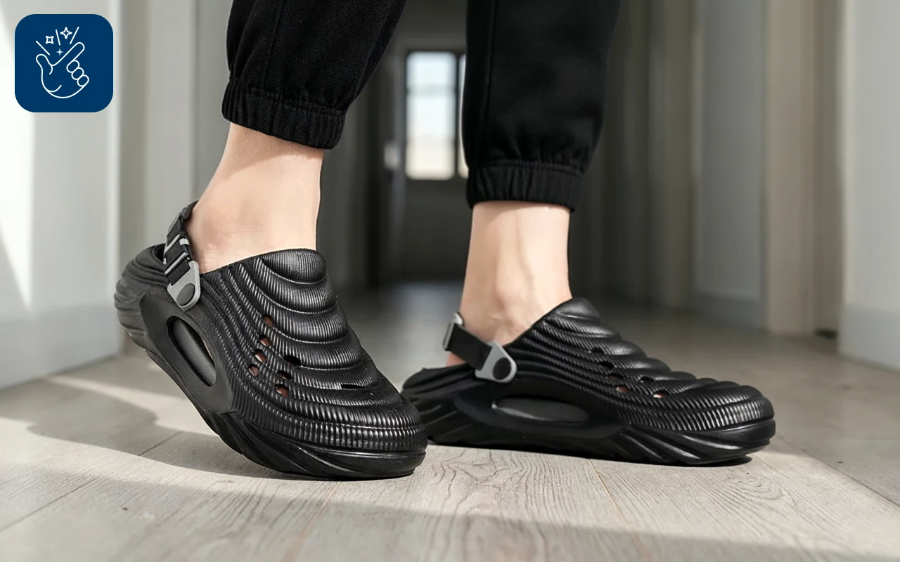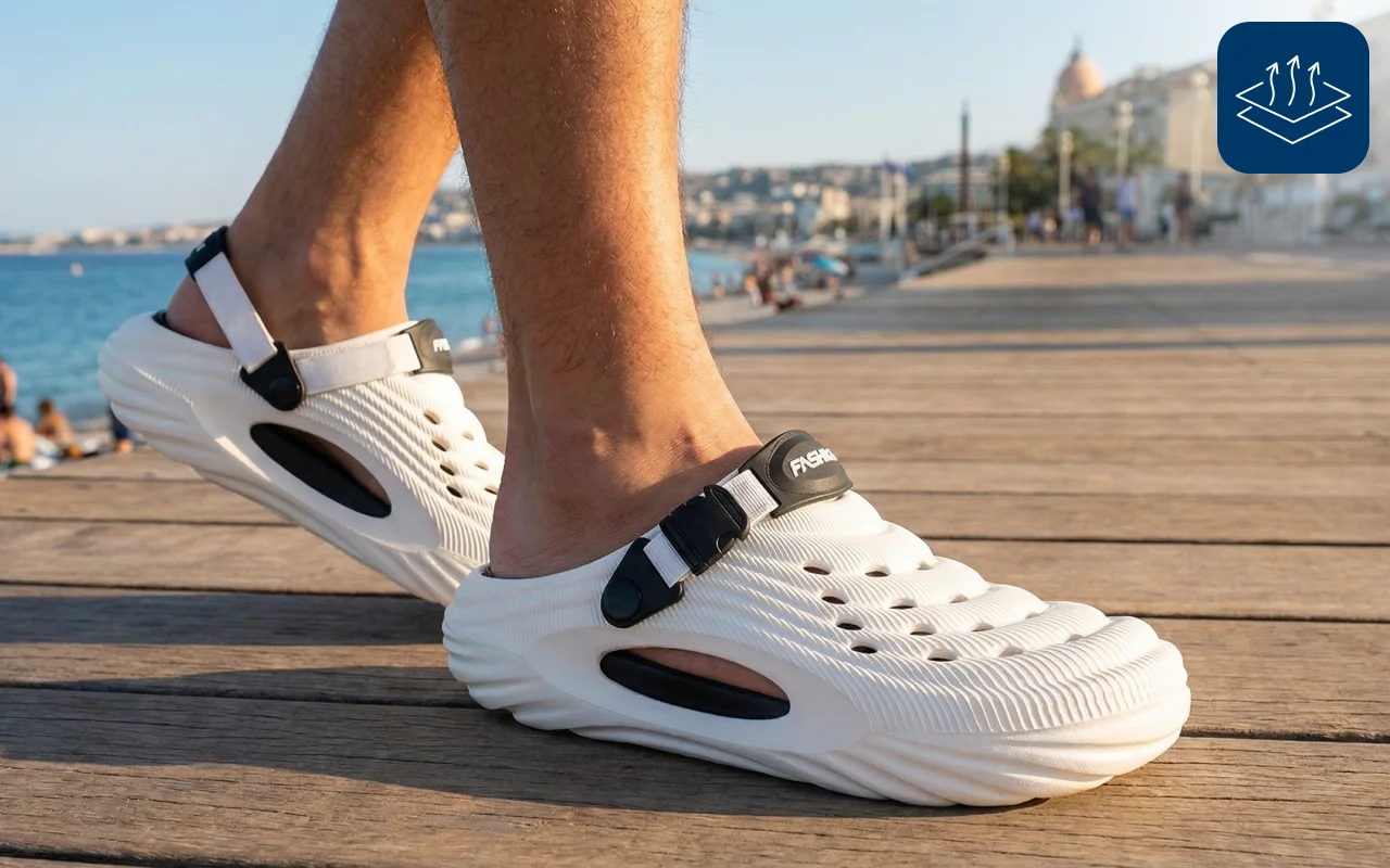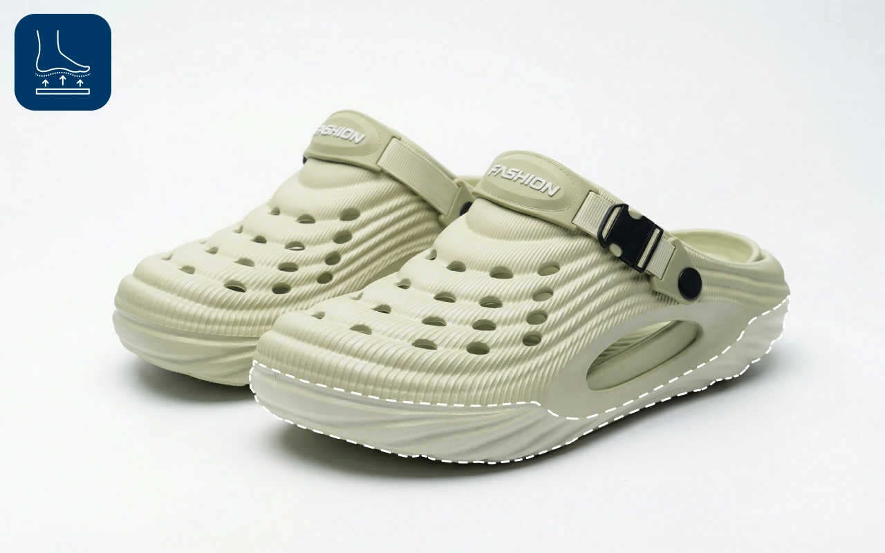 Starten Sie jeden Morgen stilvoll und genießen Sie leichten Halt überall. Atmungsaktives EVA hält Ihre Füße bei sonnigen Spaziergängen oder an geschäftigen Nachmittagen kühl. Gehen Sie überall selbstbewusst und machen Sie sich keine Sorgen um Müdigkeit. Ortorex-Clogs bieten Ihnen einfachen Komfort für jedes Sommerabenteuer.
