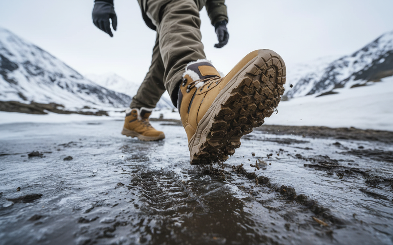 Tiefe Profile greifen auf jedem Untergrund, sogar auf glattem Eis oder Matsch. Gehen Sie selbstbewusst, egal bei welchem Wetter oder Gelände.