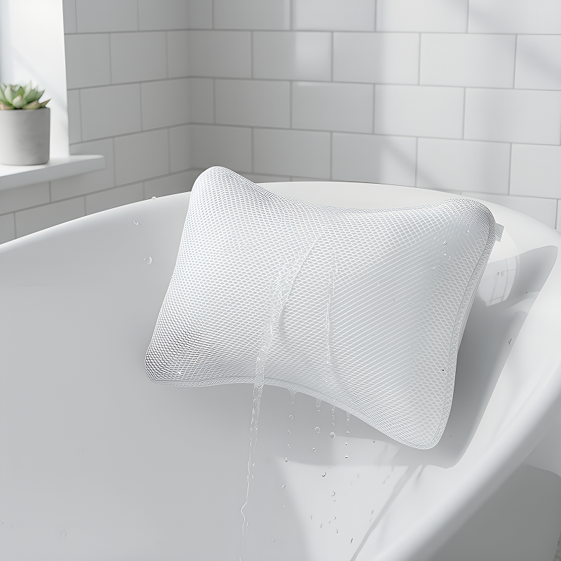 Die Netz-Kopfstütze macht meine Badezeit gemütlich und entspannt. Sie ist so weich, ich könnte die ganze Nacht in der Wanne bleiben.