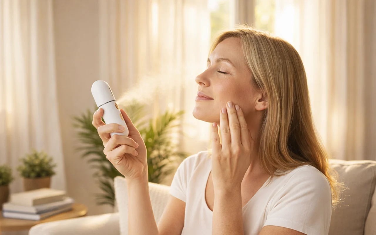 Fahle, müde Haut lässt Sie älter und weniger frisch aussehen. Der Ortorex Mini Steamer belebt Ihr Gesicht in Sekunden mit sanftem Nano-Nebel. Das kompakte Design passt problemlos in jede Tasche oder Hosentasche.