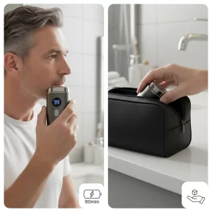 Super praktisch für Reisen, dieser Rasierer passt direkt in meine Sporttasche. Die Reinigung dauert nur eine Minute, sodass ich morgens nie in Eile bin.