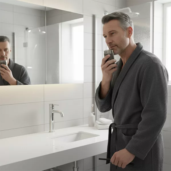 Ich nehme diesen Elektrorasierer mit zur Arbeit für schnelle Auffrischungen vor Meetings. Er ist auch so leise, dass es niemand bemerkt.