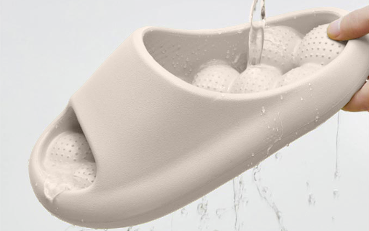 Diese Pantoletten trocknen nach dem Duschen super schnell. Die Löcher an der Unterseite lassen das Wasser schnell abfließen, das ist richtig angenehm.