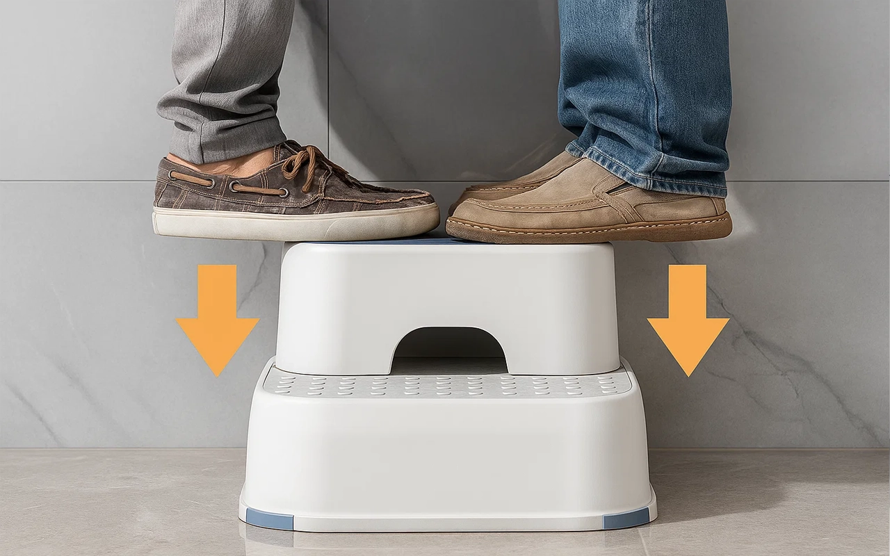 Anti-Rutsch-Pads halten den Hocker fest auf den Fliesen. Keine Sorgen mehr über Unfälle oder Ausrutschen während hektischer Morgen.